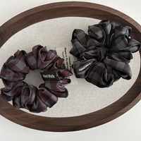 Burgundy Plaid Mini Scrunchie Fabric Hair Tie for Women Autumn Winter Cozy Ponytail Accessory